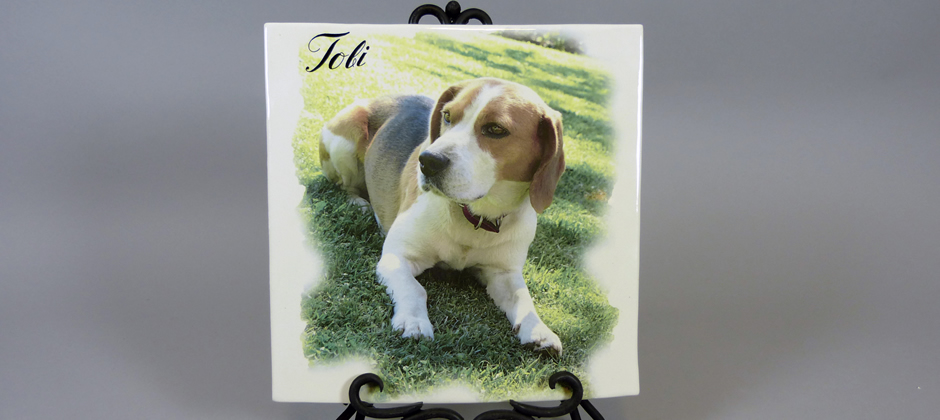 Azulejo de cerámica de 30 x 30 cm, con fotocerámica, con la imagen que se desee, en esta ocasión se realizó un trabajo sobre un perro muy querido por el cliente, este tipo de trabajo puede estar al exterior o en casa, ya que nunca se estropeará la imagen de la. Se puede personalizar cualquier tipo de fotografía y decoración. Ver Azulejo de Fotocerámica »